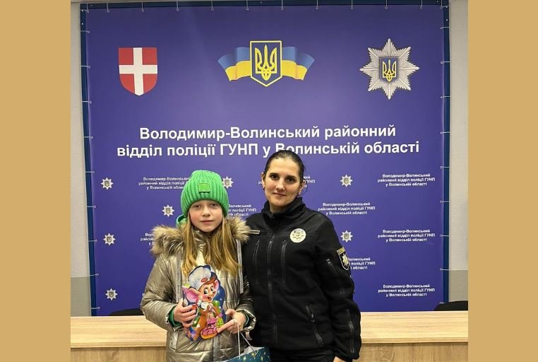 Поліцейські запросили переможницю до Володимирського районного відділу поліції, подякували дівчинці за активну участь у конкурсі, вручили подарунки й привітали з прийдешніми святами.
