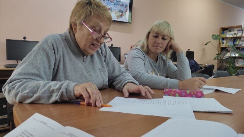 «Декотрі з учнів соромляться і кажуть: «Ми не хочемо, щоб з нас сміялися як з Азірова». Я навпаки прошу їх: «Дівчата, вчіться, говоріть, кожен помиляється». Той, хто нічого не робить, той не помиляється», – розповідає Зоя Щербяк.Марина Хижняк із Харківщини відвідує курси пів року. Каже: за професією вчителька біології, вдома спілкувалась російською, нині вчить українську.