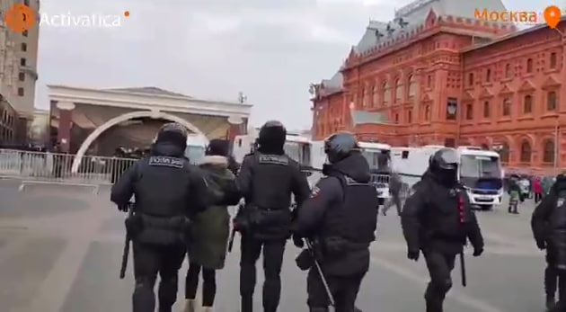 У Москві на Манежній площі нечисельні росіяни вийшли на протест проти війни з Україною. Очікувано, їх одразу «пачками» почали затримувати і «пакувати» в автозаки.