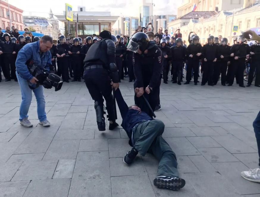 За інформацією Медузи, за станом на 18 голину на неузгодженій акції в Москві затримали майже 600 осіб.27 липня в Москві відбувся масовий мітинг проти недопуску незалежних кандидатів на вибори в Мосміськдуму. Поліція застосувала проти мітингарів кийки. Більше 1 тисячі осіб були затримані.