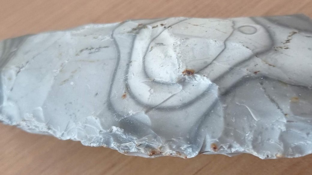 Сокира неолітична, близько 4000 р. до н. е., знайдена у Ківерцівському районі у селі Сокиричі на березі річки Конопельки, розповіла Суспільному головна зберігачка фондів музею Мирослава Мороз.