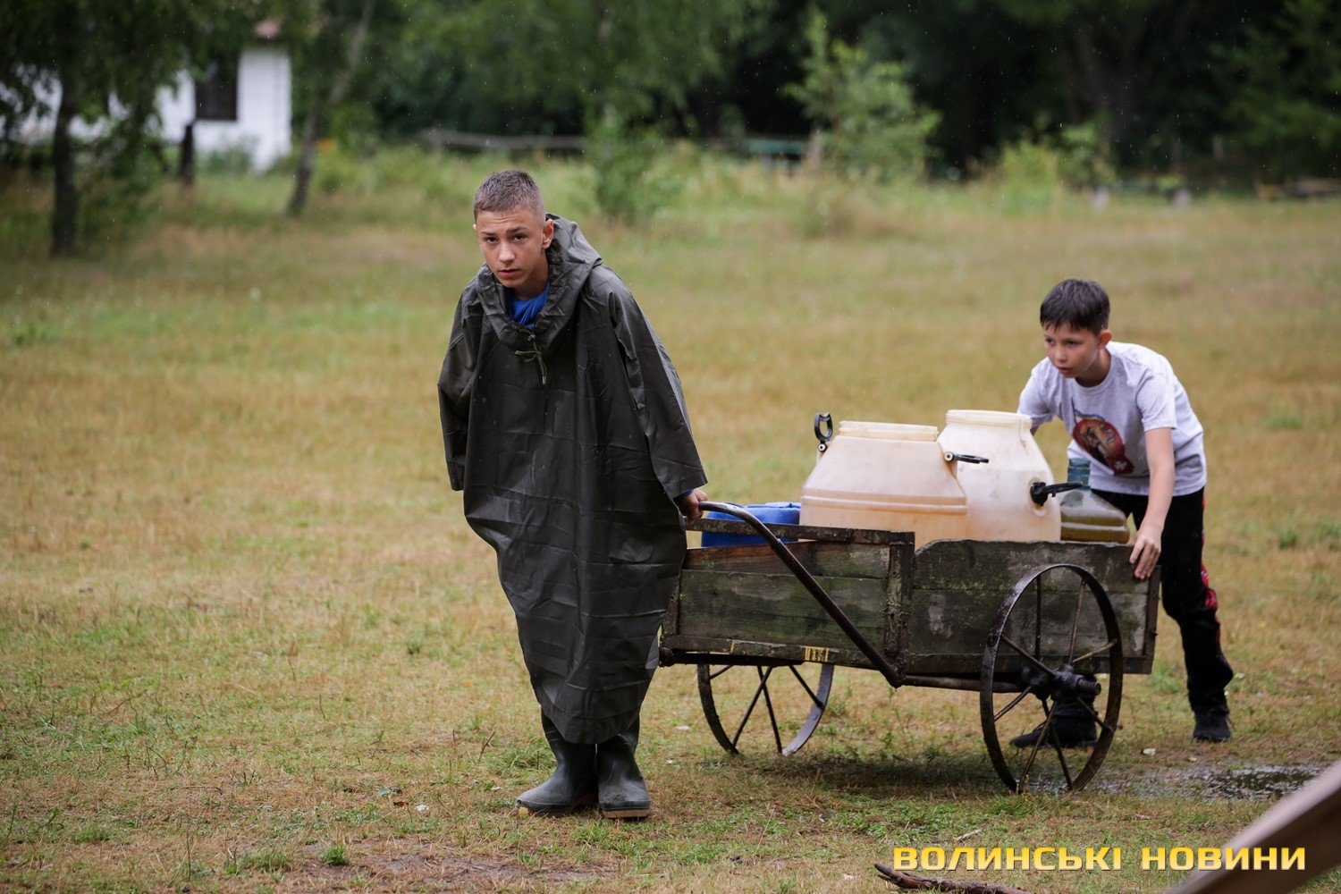 У Рокинях в Музеї історії сільського господарства Волині-скансен організували козацький табір для вразливих категорій дітей. Нині триває третій заїзд, в якому беруть участь близько пів сотні дітлахів. Дисципліна у таборі – насамперед, адже під час таборування діти можуть і отримати козацькі гривні за виконану роботу, і бути покараними за неприбраний намет.