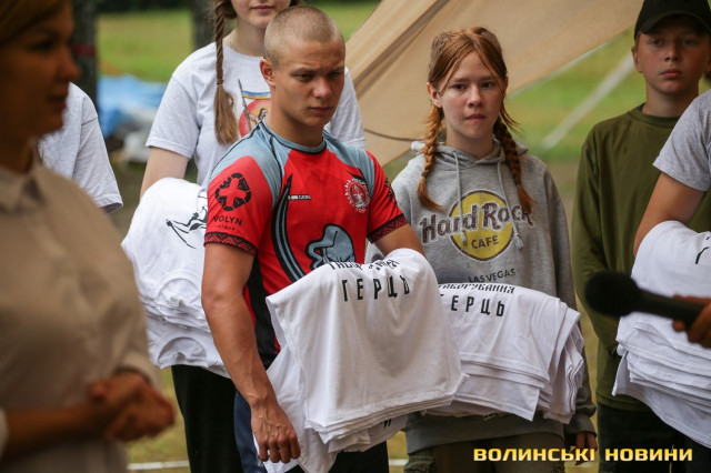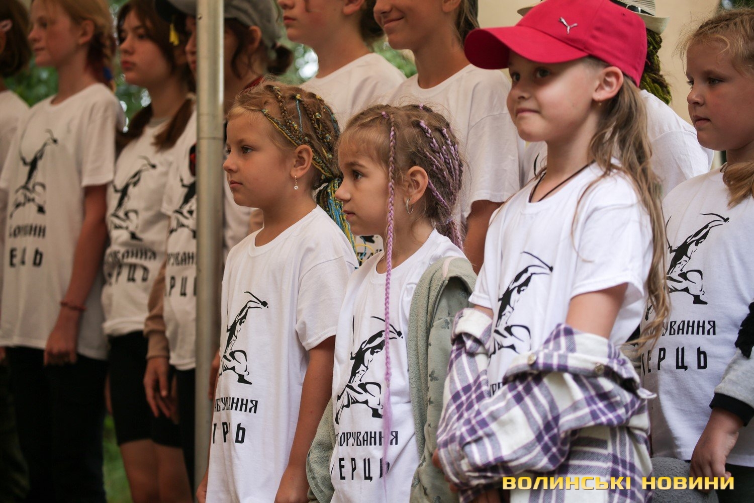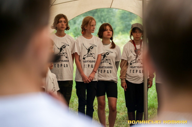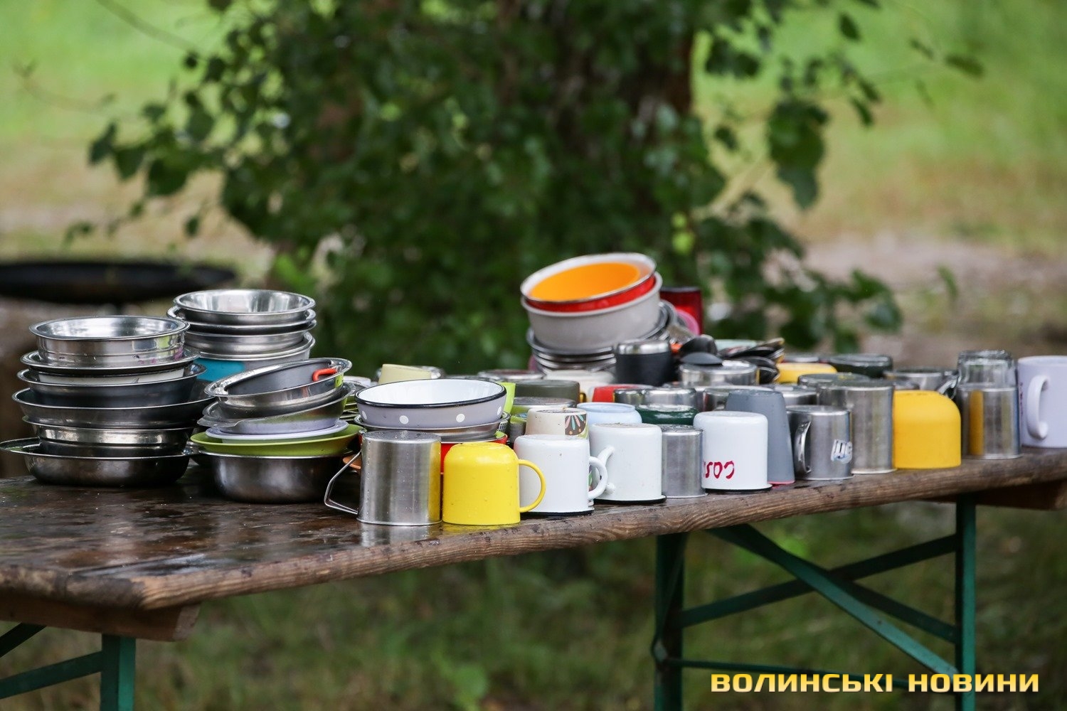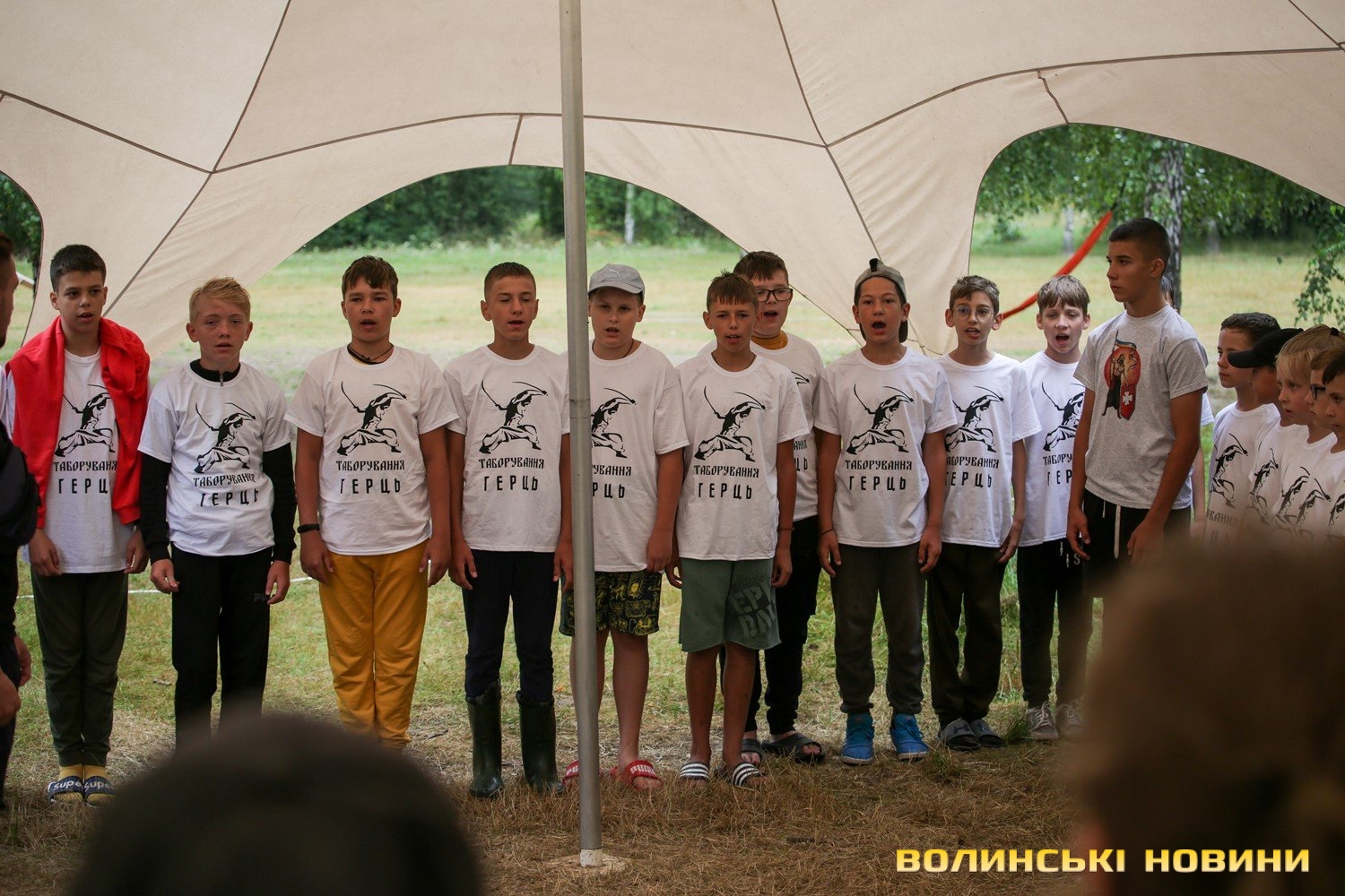 Долучився до проведення табору і Фонд Ігоря Палиці «Тільки разом», який подарував дітям футболки, що символізують їхню участь у козацькому вишколі.Загалом козацьке наметове таборування триває протягом десяти днів. Під час першого заїзду таборувалися 54 дитини, другого – 74 дитини, а нині у наметах живуть 46 дітей. Серед них – ті, хто втратив батьків під час війни, діти військовослужбовців, діти внутрішньо переміщених осіб та діти, які просто захотіли пройти козацький вишкіл.«Таборування передбачає пристосування до польових умов, тому діти беруть участь в організації табору. Вони допомагають на кухні, збирають дрова, приносять воду, тобто навчаються бути дисциплінованими та самостійними. За певну роботу отримують козацькі гривні, які зможуть витратити на розваги або ж на аукціоні наприкінці таборування. Також програма передбачає різні локації та квести, зокрема стрільбу з лука, пневматичної зброї, метання ножів та гончарство. Окрім того, діти грають козацькі ігри, проходять вишкіл. До нас навіть приїжджають лицарі, які показують майстер-клас», – розповів керівник Музею історії сільського господарства Волині-скансен Роман Ковальчук.Фонд Ігоря Палиці «Тільки разом» завжди долучається до хороших ініціатив музею-скансену, цей випадок не став винятком, адже нині діти військовослужбовців потребують особливої уваги.