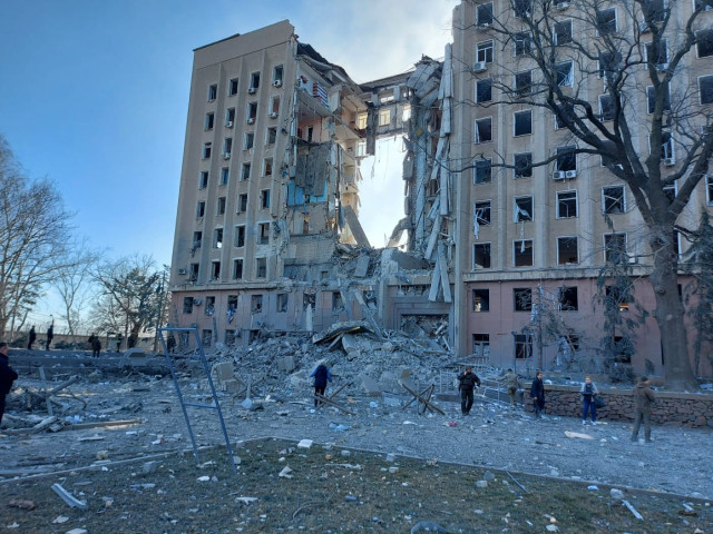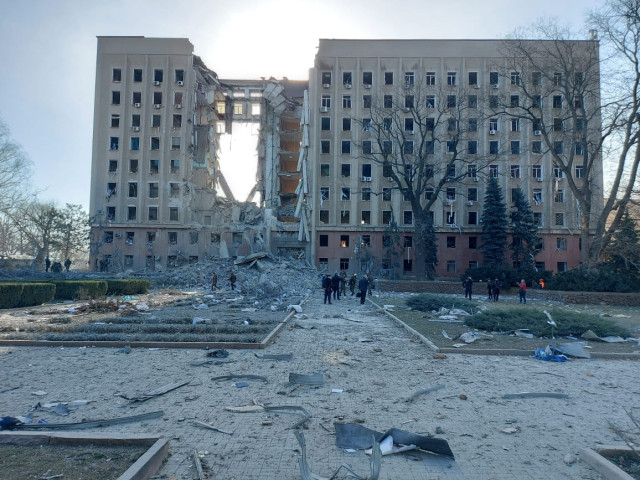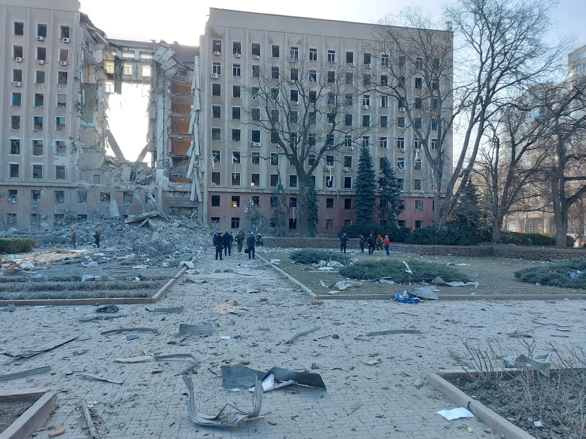 Згодом Віталій Кім повідомив, що окупанти дочекалися, щоб люди вийшли на роботу, і тоді вдарили по будівлі ОДА. Більшість людей змогла вийти із пошкодженої будівлі самостійно. Тих, які перебувають під завалами, наразі намагаються дістати рятувальники.