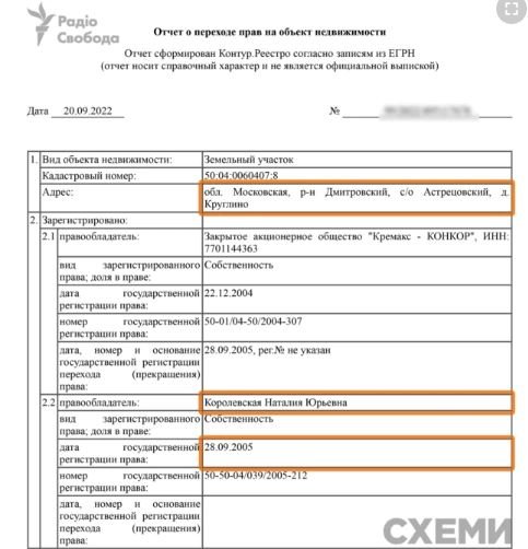 З’ясувалося, що депутат Королевська з вересня 2005 року має нерухомість у селі Круглино Дмитрівського району Московської області.Її будинок розташований у садовому товаристві Астрецовський – це курортна зона поряд із гірськолижним курортом Яхрома Парк.З того часу вона як народний депутат, подала не одну електронну декларацію, але російської нерухомості немає у жодній з них, йдеться у розслідуванні.