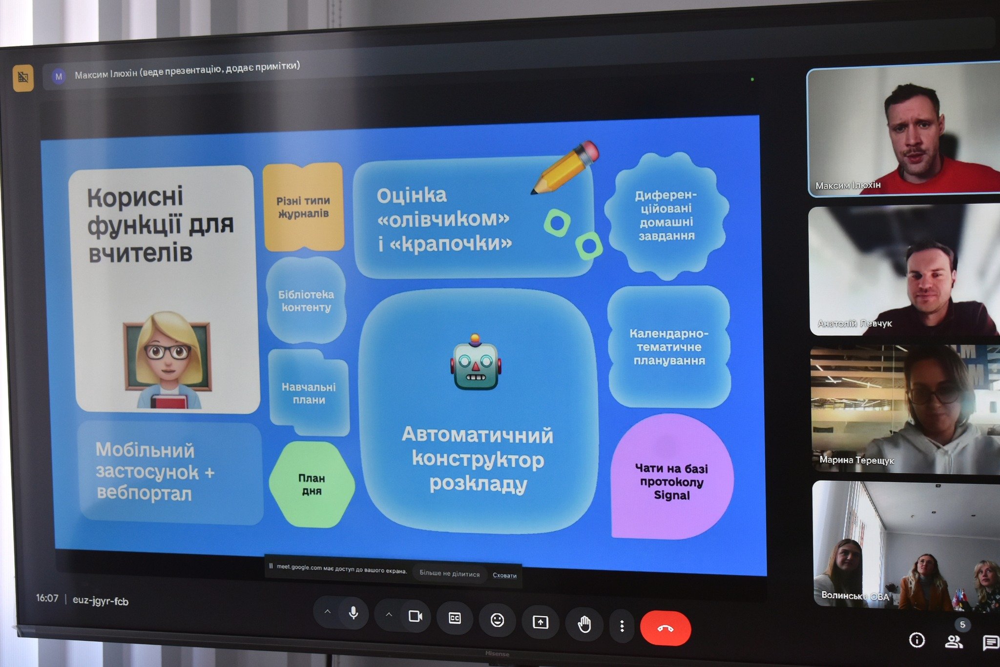 Тож найближчим часом відбудеться презентація застосунку для органів управління освіти в територіальних громадах Волині, визначення зацікавлених шкіл та старт підготовчих робіт для впровадження системи з нового навчального року.