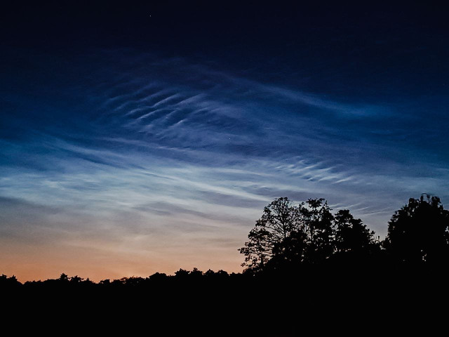У небі над Волинню помітили рідкісне атмосферне явище – сріблясті хмари, або, як їх ще називають, хмари, що світяться. Їх видно в глибоких сутінках, безпосередньо після заходу сонця або перед сходом Сонця.
