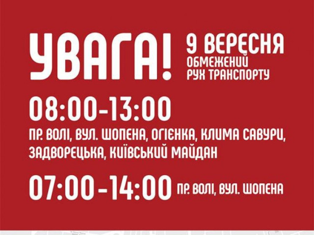 В неділю, 9 вересня, у центрі Луцька буде обмежений рух транспорту.