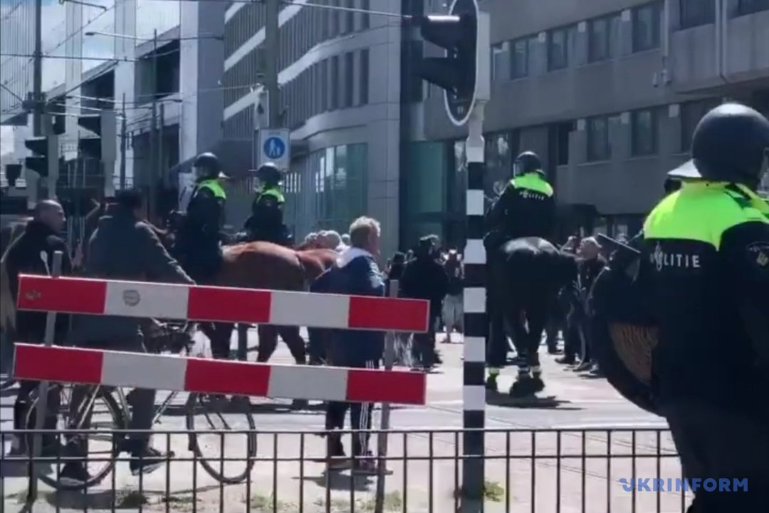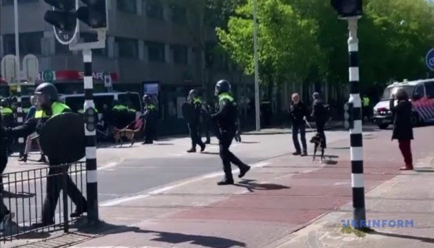 Біля центрального вокзалу Гааги поліція затримала десятки людей за порушення запроваджених правил через коронавірус. Точна кількість затриманих наразі невідома.