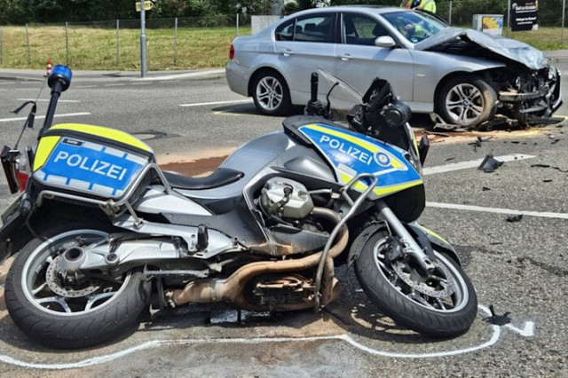 Другий поліцейський мотоцикл BMW від сили удару відкинуло на службовий автомобіль іншого поліцейського. Зайнявся бензин, який витік при ударі.Внаслідок аварії 61-річний чоловік невдовзі помер у лікарні.
