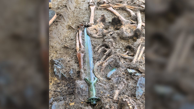 Археологи в Німеччині виявили у похованні трьох осіб меч, що датується кінцем 14 століття до нашої ери. Зброя збереглася в настільки хорошому стані, що досі блищить.