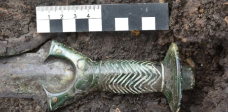 Археологи в Німеччині виявили у похованні трьох осіб меч, що датується кінцем 14 століття до нашої ери. Зброя збереглася в настільки хорошому стані, що досі блищить.