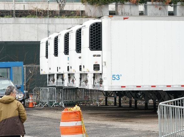 У Нью-Йорку в якості імпровізованих моргів використовуються холодильні причепи через зростаючу кількість смертей від COVID-19.