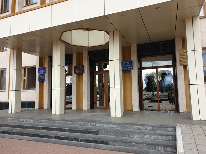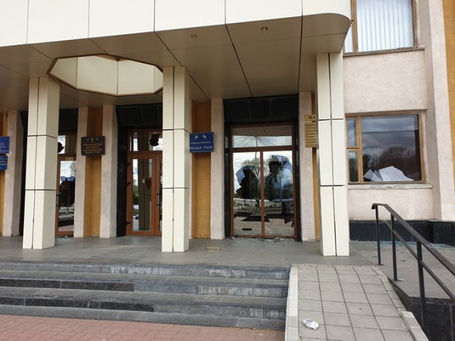Невідомі розбили вхідні двері та вікна першого поверху в будівлі Нововолинської міської ради.