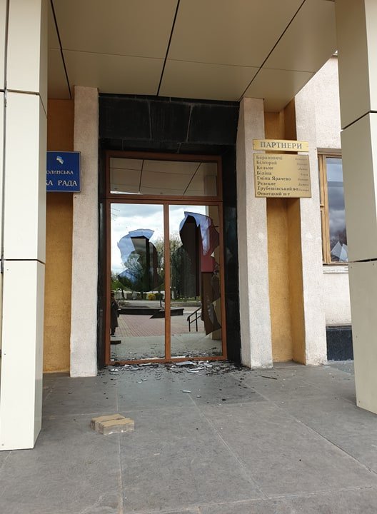 Молодик, який днями проривався через Ягодин, закидав цеглою Нововолинську міськраду