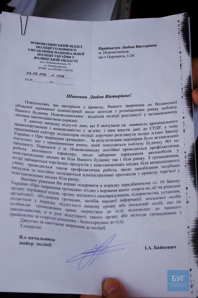 Так, жителі Нововолинська, що проживають в центрі міста за адресою проспект Перемоги, 1, 1А та на бульварі Шевченка, 2, 4 вже не один рік потерпають від незручностей, які завдає їм ринок, що знаходиться неподалік стадіону “Шахтар”, а й, відповідно, біля будинків жителів. Люди розповідають, що втомилися від бездіяльності міської влади та халатності поліції, пише БУГ.