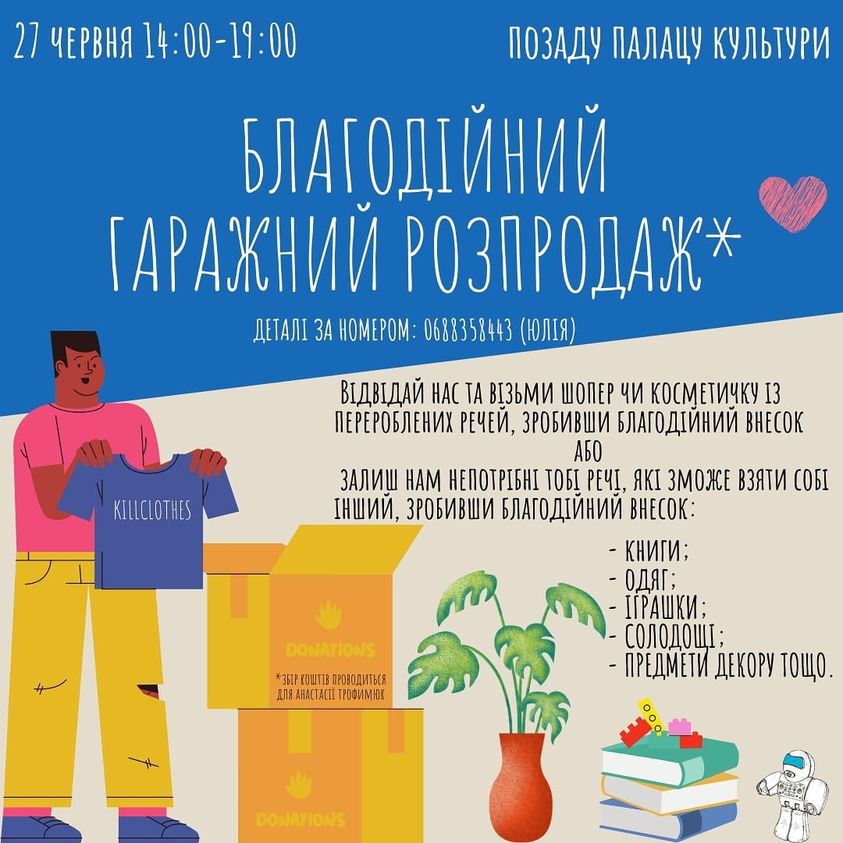 У Нововолинську 27 червня, у День молоді, відбудеться благодійний гаражний розпродаж для підтримки Анастасії Трофимюк.