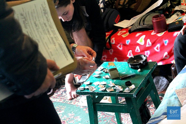 Торговець на прізвисько «Шкет» та його на два роки молодша співмешканка не відчинили двері правоохоронцям, тому проникнення в приміщення було здійснено примусово шляхом вибивання дверей.