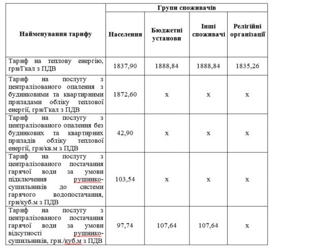 На засіданні виконкому затвердили такі тарифи:
