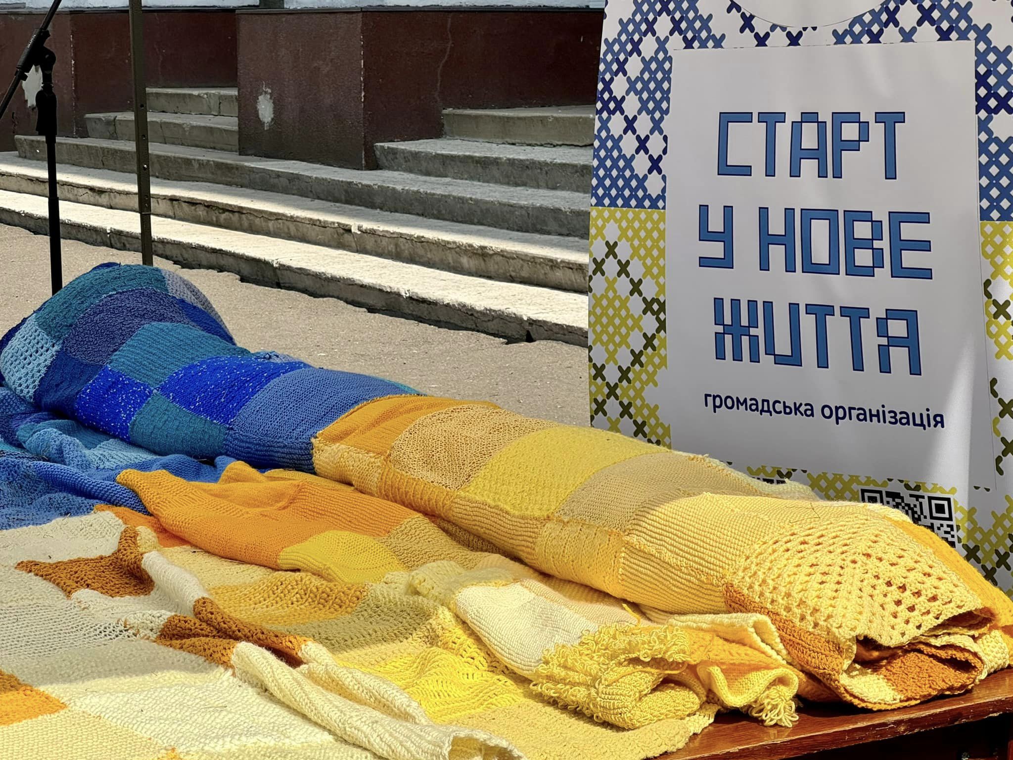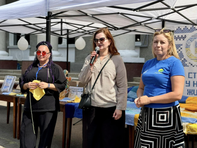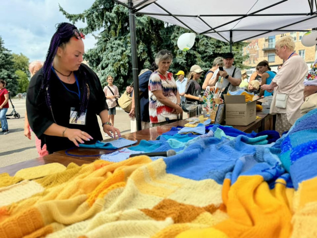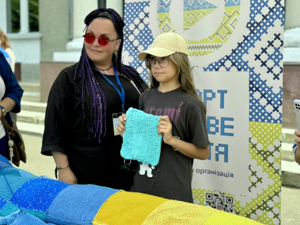 У Нововолинську розгорнули найбільший вʼязаний прапор України