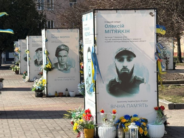 На Алеї закріпили банери із портретами тих, хто загинув від листопада 2025 року до березня 2026 року.