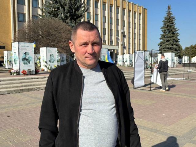 До однієї з інсталяцій прийшла сестра загиблого військового Валентина Короля Оксана Король. Вона розповіла, що могила брата – у Шептицькому, але жінка часто приходить саме сюди. Каже: для неї Алея Героїв стала місцем зустрічі з братом.