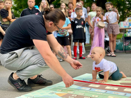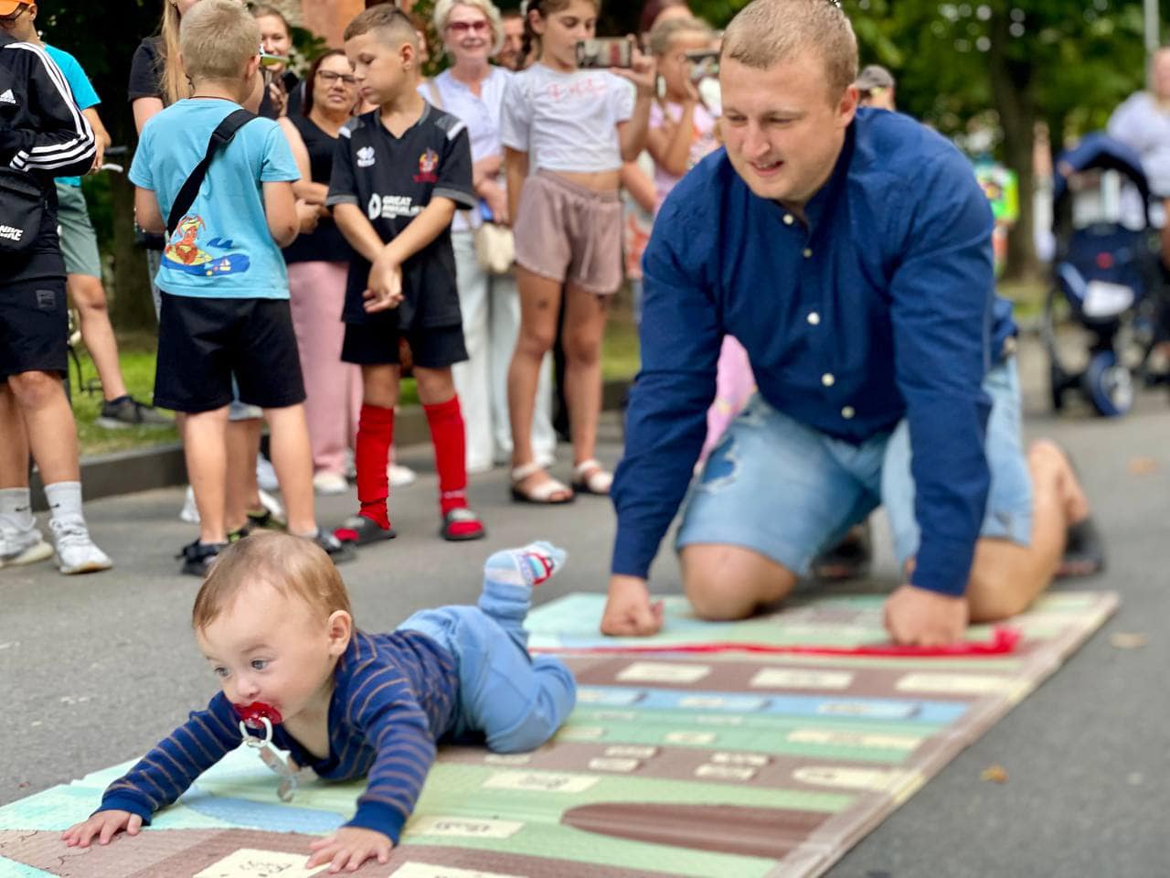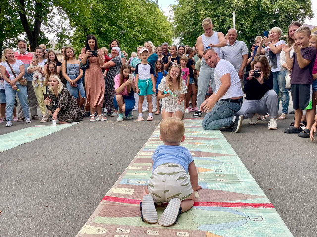 У неділю, 11 серпня, напередодні Дня молоді на стометрівці пройшли вже традиційні змагання «Забіг у повзунках». У них взяли участь 18 хлопчиків і дівчаток віком від 8 до 14 місяців. Їхнім завданням було подолати чотириметрову дистанцію повзком якнайшвидше. Батьки та рідні могли підбадьорювати діток, показувати їм улюблені іграшки, але не торкатися учасників.