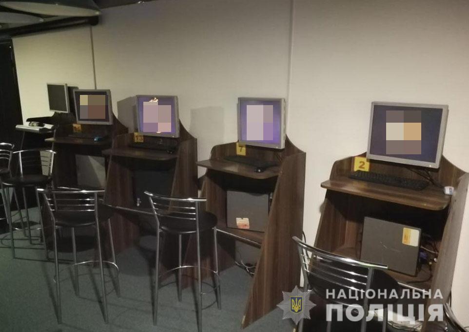 У приміщенні поліцейські виявили та вилучили близько 50 одиниць комп’ютерної техніки (системні блоки, монітори, клавіатури, мишки), маршрутизатори, термінал самообслуговування, грошові кошти, отриманні незаконним шляхом та банківські картки.За цим фактом розпочато кримінальне провадження за ч. 1 ст. 203-2 (Незаконна діяльність з організації або проведення азартних ігор, лотерей) Кримінального кодексу України. Поліцейські встановлюють причетних до організації незаконного бізнесу, їм загрожує від 170 до 680 тисяч гривень штрафу без права обіймати певні посади строком на рік.