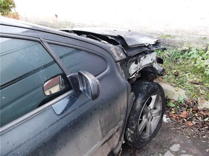 Власника чи власницю “Пежо” ще досі не встановили. Машина на польських номерах, вони обгоріли так, що й не розібрати.
