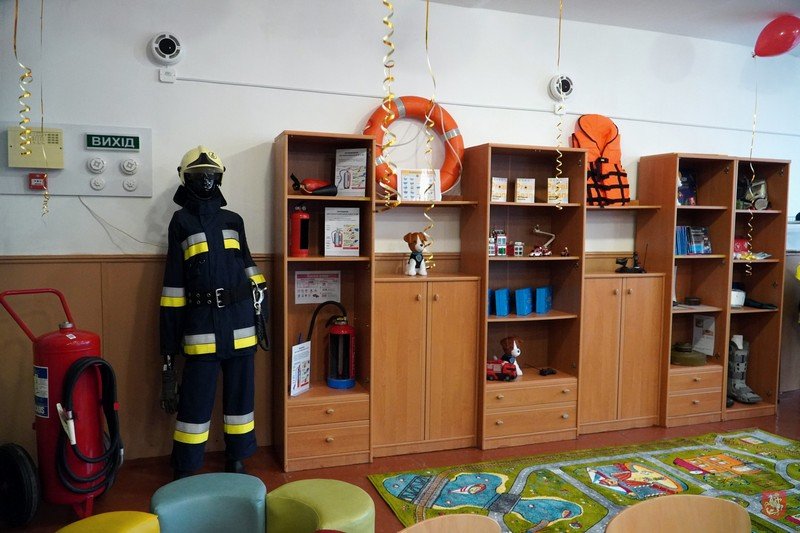З нагоди відкриття класу рятувальники підготували святкове дійство з видовищами у вигляді кольорових вогнегасників та занять, під час яких в ігровій формі донесли дітям важливу інформацію, яка допоможе зберегти життя, дати собі раду в екстремальних умовах, а також навчить відповідально ставитися до власної безпеки.