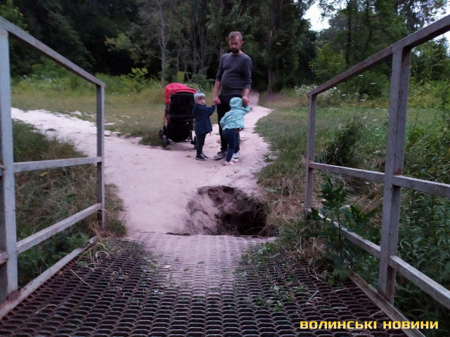 «Перед тим мостом утворилося справжнє провалля, моя внучка боїться через нього ходити, але коли розпочнеться навчання у школі – доведеться. Якщо нічого не зробити, конструкція зруйнується, хтось може травмуватися», – розповіла жінка.