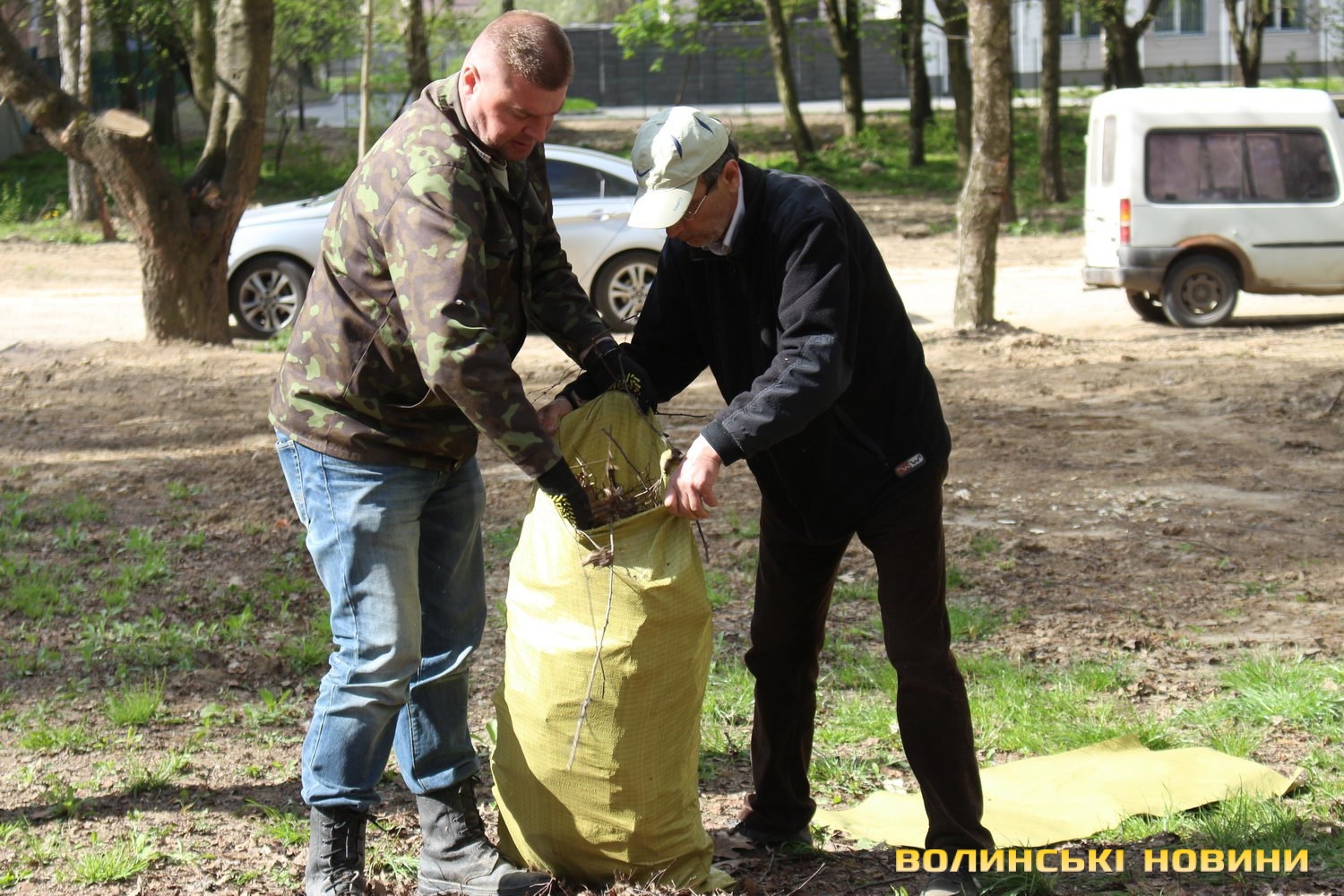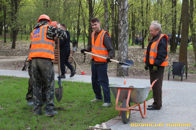 «Цього разу долучилося багато людей. Ті, хто не зміг прийти вранці, можуть прийти після обіду. Взагалі ми регулярно проводимо прибирання, вивозимо сміття, адже один працівник КП «Парки та сквери міста Луцька», затверджений за парком, не може здужати такий об’єм роботи. Я вважаю, що не потрібно мріяти про Європу, її потрібно робити тут, хоча б прибираючи за собою», – зазначив Юрій Безпятко.Обранець громади пригадав, що довгий час територія парку була спірною ділянкою, за якою ніхто не доглядав: «Тут були хащі, де зловживали спиртним. Після того, як розпочалося будівництво, було проведено велику кількість круглих столів, організованих за участю міської ради та компанії ЛДБК, і врешті досягнуто результату, незважаючи на скептиків. На майбутнє вже затверджена нова концепція парку. Сьогодні, наприклад, люди працюють з інвентарем, який закупила компанія ЛДБК, тобто йдеться про співпрацю свідомо бізнесу та громади міста».