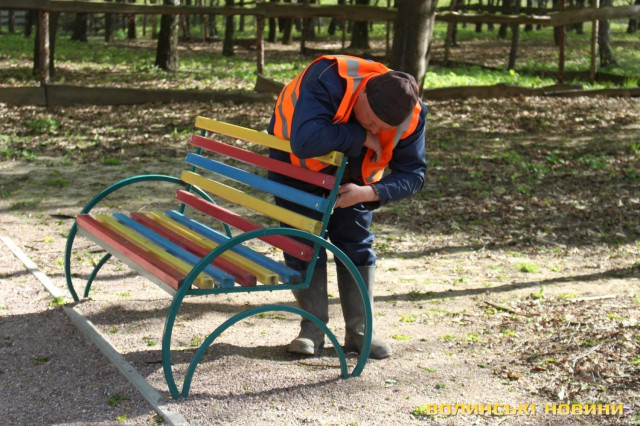Лавку і смітника не зламали але ж всетаки зламали пісочницю де діти граються.На фото можна побачити як працівники лагодять деревяне сидіння на пісочницю щоб діти могли б сідати.