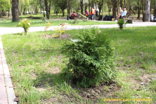 Туї, ялівці, ялинки та сумахи – загалом близько 30 кущів і дерев – висадили в парку, що на розі вулиць Конякіна та Гордіюк.