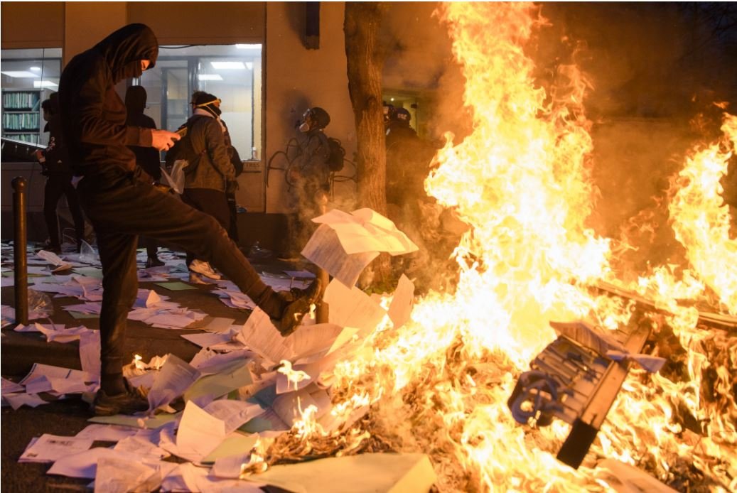 Окрім того, група анархістів увірвалася в будівлю одного з банків та спалила папери, які там були.У відповідь на це правоохоронці застосували сльозогінний газ та висунули повторну вимогу зупинити насильство на вулицях міста.Згодом почалися арешти. Нині відомо про понад три десятки заарештованих.Цієї суботи, 5 грудня, в Парижі розпочалися масові протести проти нового закону про безпеку. В акціях протесту беруть участь понад 52 тисячі осіб. За даними МВС, на вулицях Парижа знаходяться 5 тис. протестувальників. Протести відзначилися зіткненнями між поліцією і протестувальниками.