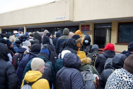 У прикордонному польському місті Перемишль очевидці фіксують сотні чоловіків, які чекають на черги поїздів в Україну.