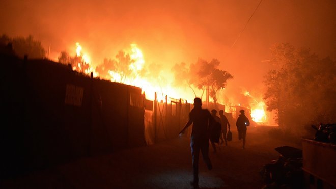 BREAKING: Large fire breaks out at Moria refugee camp on Greek island of Lesbos pic.twitter.com/Ke5IyAZ5fG