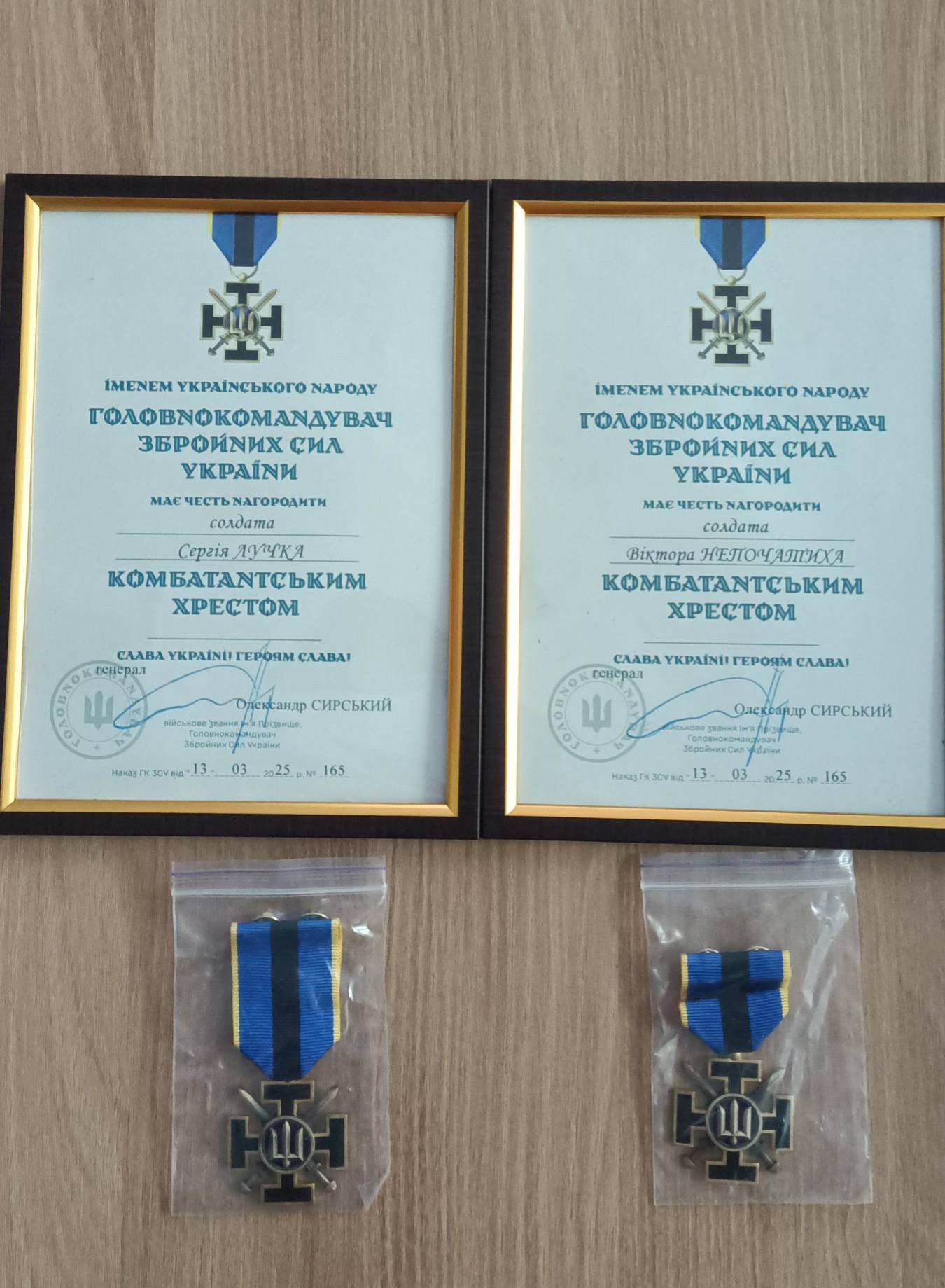 Орденом нагороджено Яцишина Вадима Леонідовича із села Липини, матроса і кулеметника відділення морської піхоти, який став до лав ЗСУ в липні 2024 року, а його життя обірвалося 6 листопада 2024 року на околицях населеного пункту Миколаївка Покровського району Донецької області. Нагороду Героя отримали батьки та дружина Тамара Яцишина.Посмертно нагороджено Сюрху Віталія Васильовича із села Підгайці, рядового протитанкового взводу, призваного в березні 2023 року, який боронив Батьківщину на Харківському напрямку і загинув 2 серпня 2023 року в районі населеного пункту Вільшана Харківської області у результаті ворожого обстрілу. Нагороду отримала його мати Євгенія Сюрха.Також відбулося вручення високих військових нагород мужнім воїнам-захисникам. Від імені українського народу Головнокомандувач Збройних сил України Олександр Сирський нагородив почесним нагрудним знаком «Комбатантський хрест» солдатів Віктора Непочатих, жителя села Хорлупи, та Сергія Лучка, жителя села Борохів.«Комбатантський хрест» є почесним знаком Головнокомандувача ЗСУ, який вручають військовослужбовцям, які брали участь у відбитті збройної агресії проти України і були звільнені за станом здоров'я. Ця нагорода – це свідчення їхньої незламної волі, відваги та жертовності у боротьбі за нашу свободу й незалежність.