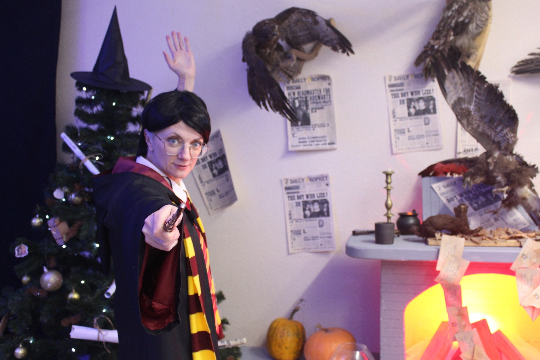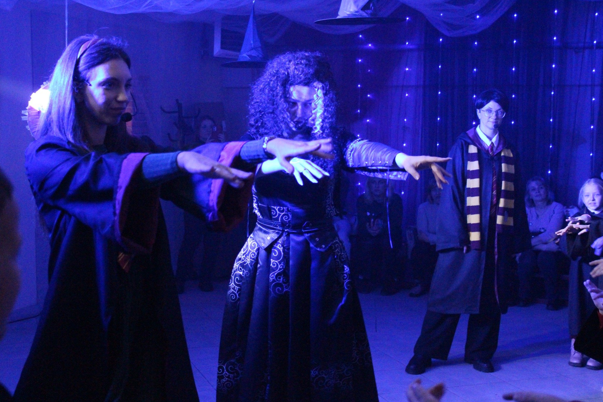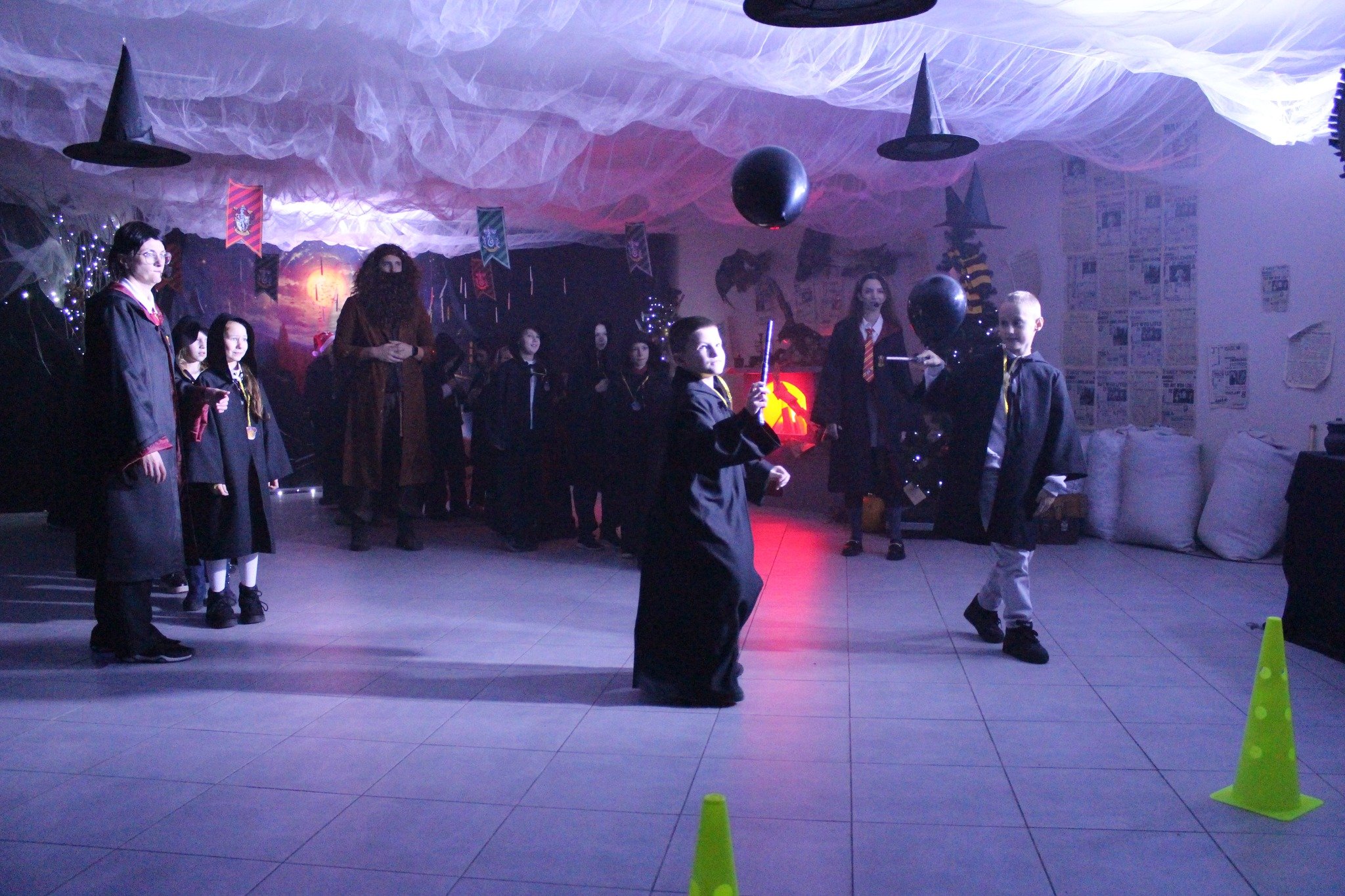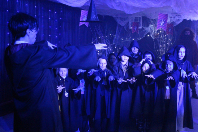 Окрім активних розваг і танців, діти відвідують лекції професорки Трелоні, яка викладає курс віщувань і передбачень, вчаться законів левітації та чарівних заклинань, якими разом із Гаррі Поттером запалюють летючі вогні.Віщунка Трелоні навіть передбачає дітям можливу зустріч із темним чарівником Лордом Волдемортом, який живе в підземеллях Гоґвортсу. Але разом із дітьми вона змінює перебіг подій, задіюючи магію, аби знищити темні сили та зустріти доброго чарівника – Святого Миколая.І хоч віддана соратниця Волдеморта Белатриса намагається зачарувати дітей, вони захищають Гаррі, долають стихію зі сріблястого паперового снігу та перемагають злого чаклуна. Діти знаходять чарівне закляття та звільняють Святого Миколая, який приходить до них із подарунками.Майстерклас для «студентів» Гоґвортсу теж був тематичним: кожен розмалював фігурку сови. У Гоґвортсі сова є символом мудрості, знань, дружби та відданості. Адже полярна сова Гедвіґа, яку Гаррі Поттеру на 11-річчя подарував Геґрід, була його вірною супутницею і доставляла листи від друзів зі школи чарівників.Відтепер близько тисячі дітлахів із сіл Підгайцівської громади та Луцька, які відвідали Майстерню Святого Миколая, матимуть своїх чарівних сов, що нагадуватимуть їм про неймовірне свято, яке подарувало щирий захват і зміцнило віру в те, що добро перемагає зло.