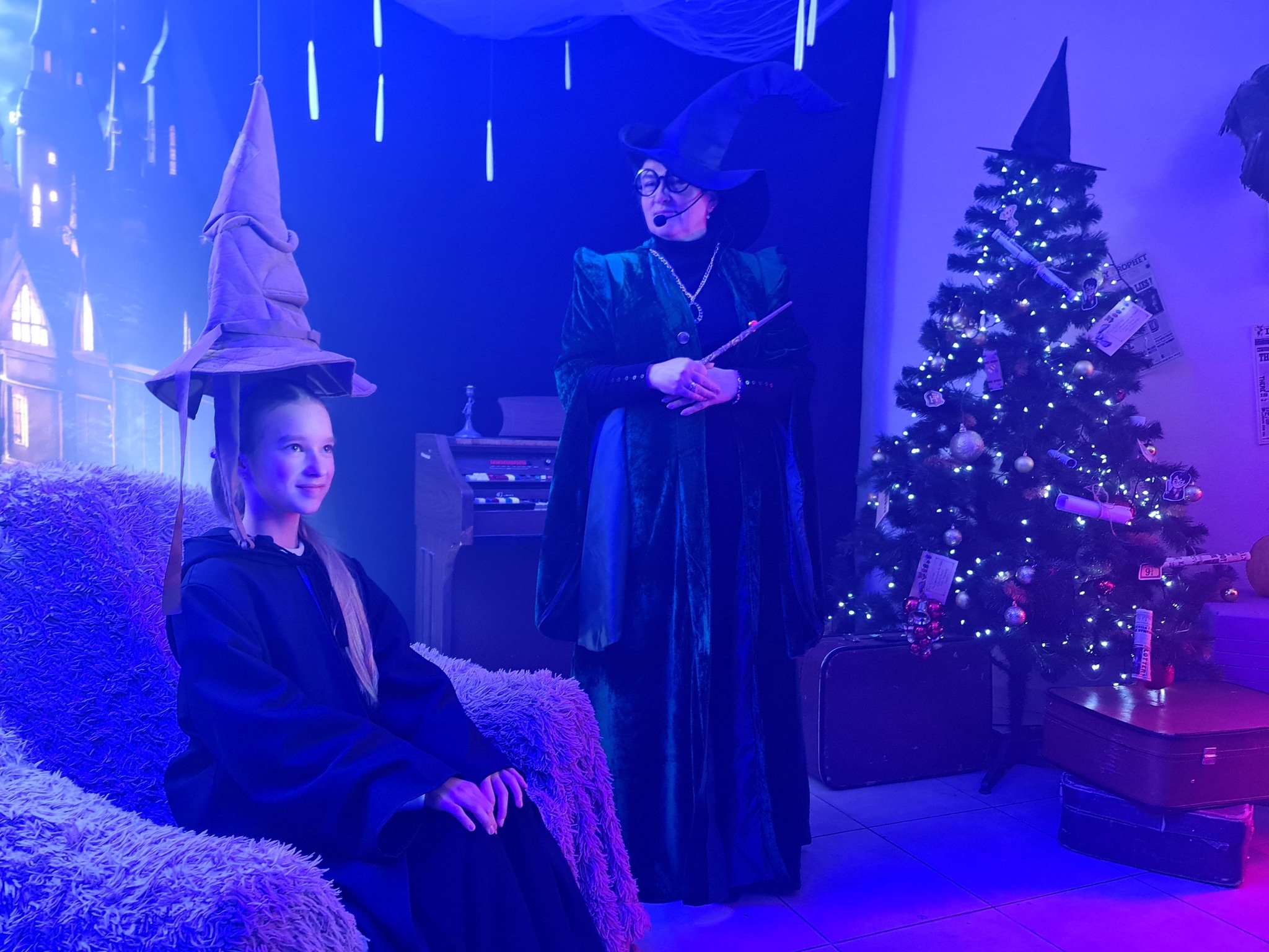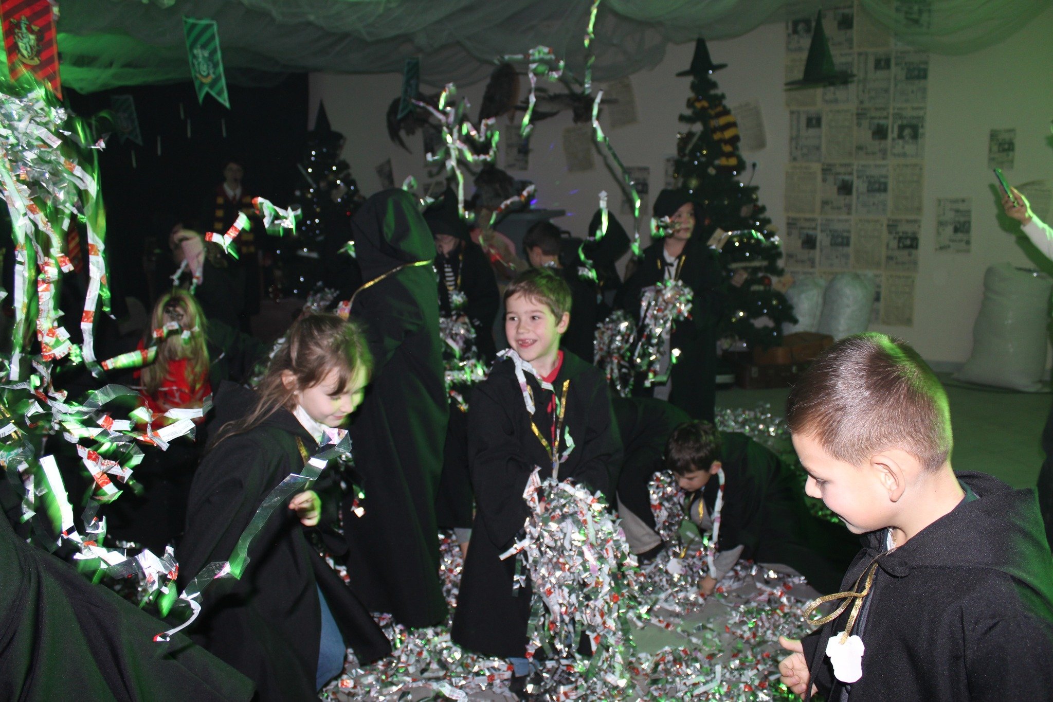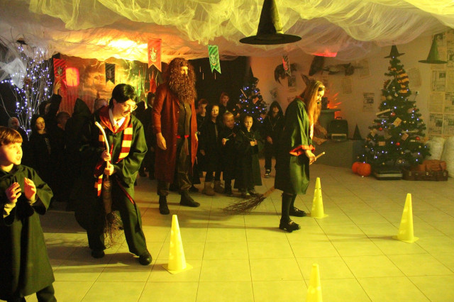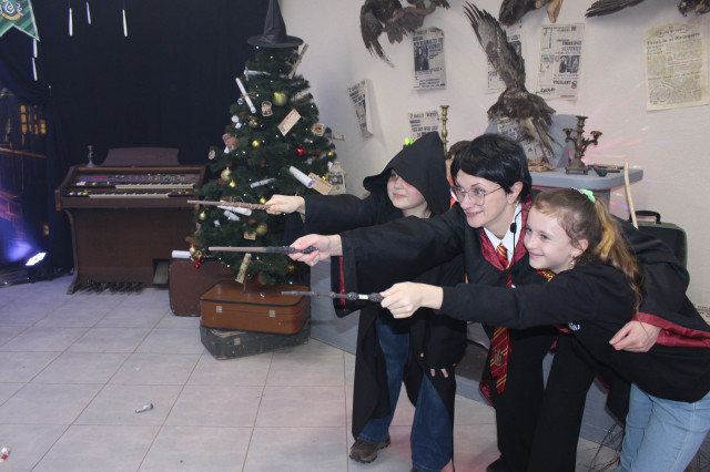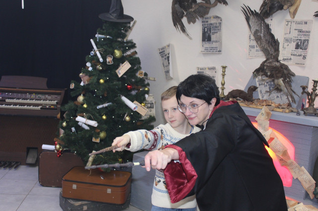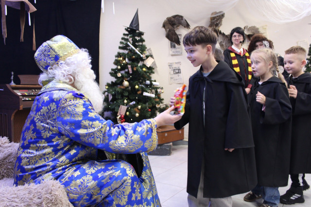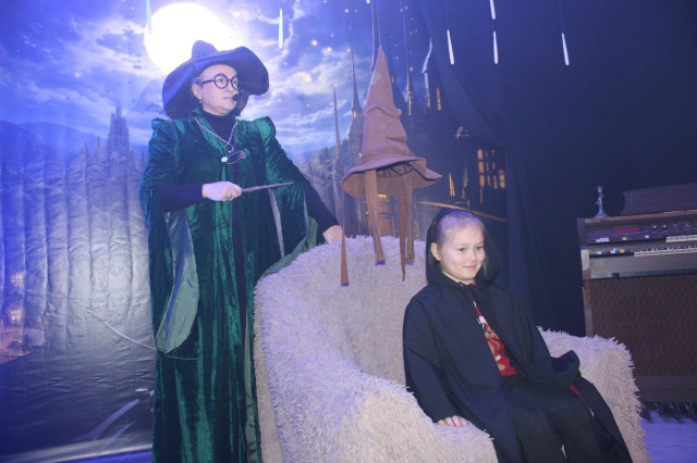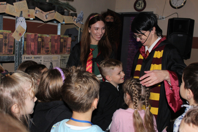 Щороку наприкінці листопада на два тижні звичайне укриття перетворюють на світ новорічно-різдвяних див, у якому дітлахи з кількох навколишніх громад поринають в атмосферу казкових героїв і веселих розваг.Цьогоріч у маленьких гостей Майстерні емоцій через край. Кожна дитина має можливість перетворитися на студента одного з двох факультетів – Слизерину або Ґрифіндору, одягнувши спеціальні чорні мантії. Професорка Гоґвортсу Мінерва Макґонеґел уважно спостерігає за успіхами студентів та їхньою поведінкою у Школі магії.Разом із напіввелетнем і ключником Гоґвортсу Геґрідом діти проходять крізь кам’яну стіну на платформі 9¾ та за допомогою Сортувального Капелюха розподіляються на дві команди, які очолюють Гаррі Поттер і Герміона.Читати ще: Миколай пам’ятає про всіх: у Луцьку вручили подарунки діткам з інвалідністю
