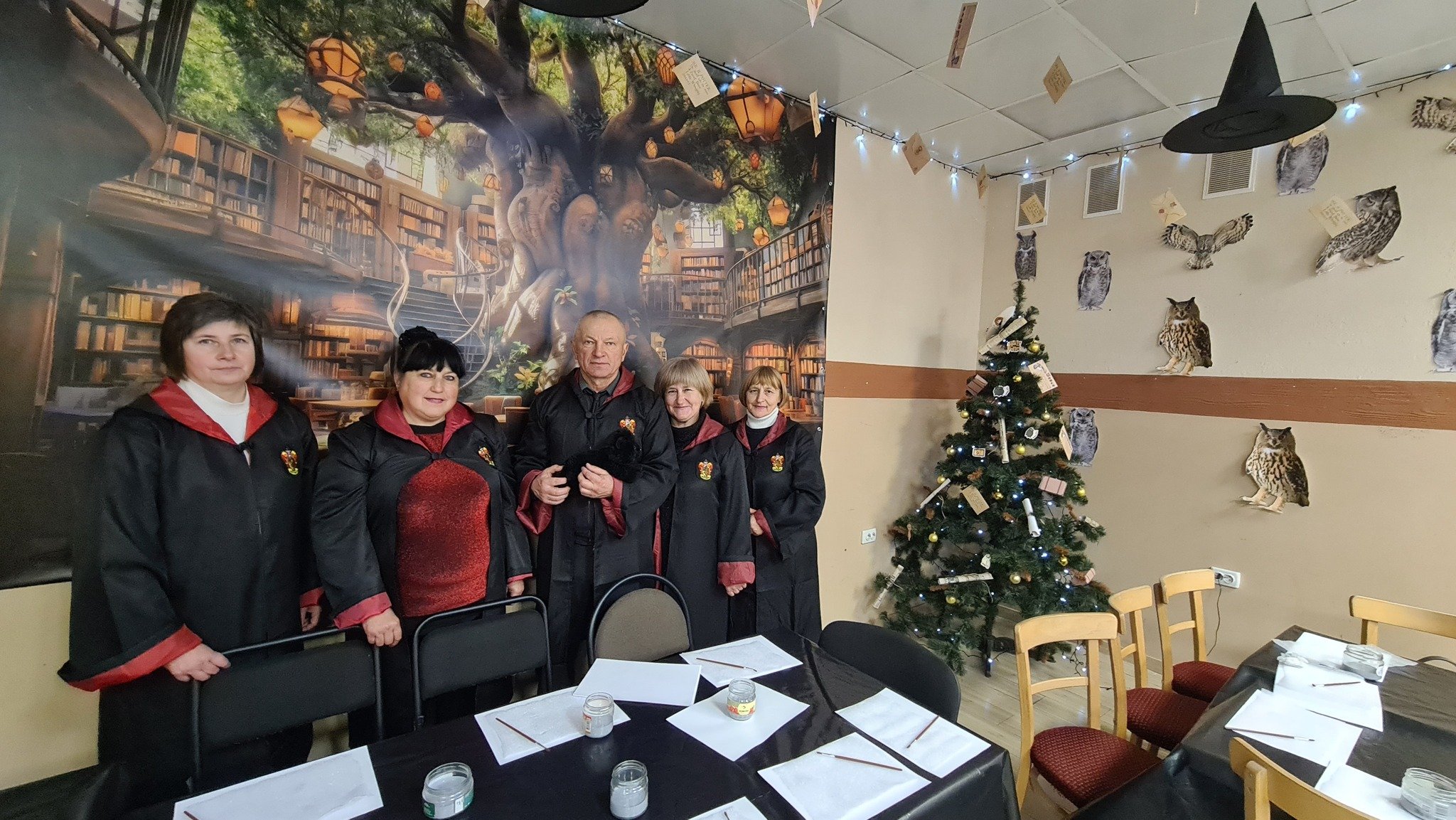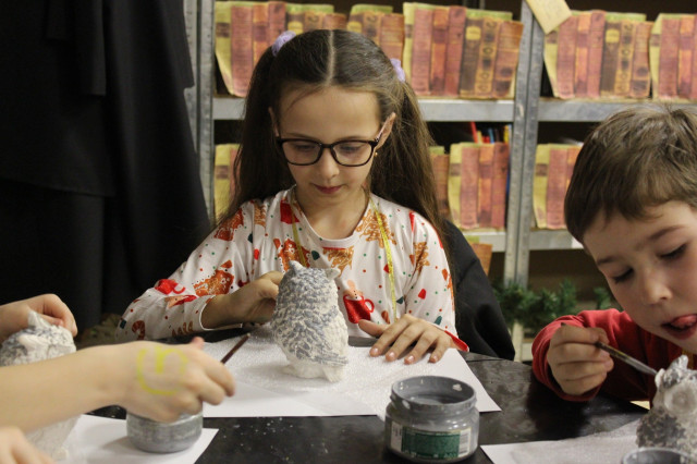 Майстерня Святого Миколая у Підгайцівській громаді цьогоріч запрацювала в стилі Різдвяного Гоґвортсу. Казкову атмосферу створили в укритті Липинського будинку культури, облаштувавши простір для майстеркласів у вигляді бібліотеки та головну залу – у стилі школи чарів та чаклунства, де навчалися Гаррі Поттер і Герміона.