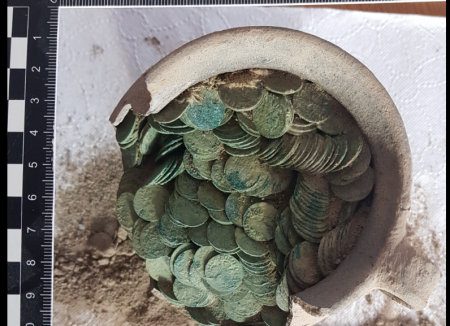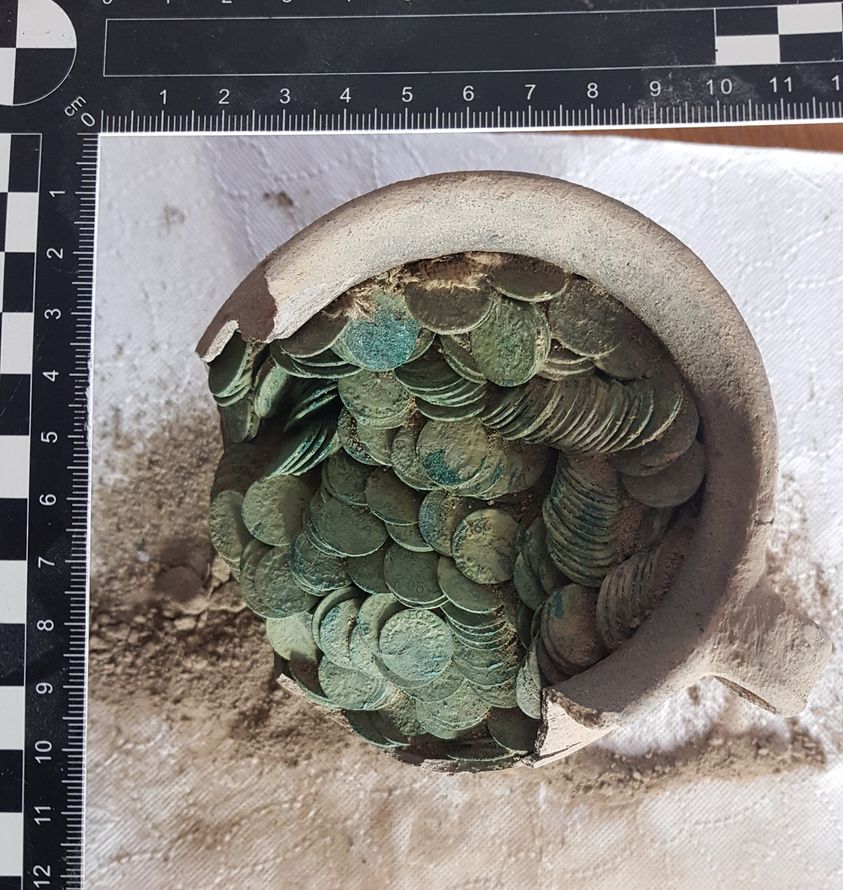 Попередній аналіз показав, що це монетний скарб, який складається з покладу коронних і литовських шилінгів з р. XVII ст., орієнтовною кількістю близько 1000 штук, поміщених у керамічний глечик (так званий сівак) зі слідами механічних пошкоджень.