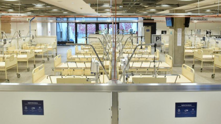 У Варшаві на Національному стадіоні відкрили тимчасовий госпіталь для хворих на коронавірус, щоб зменшити навантаження на лікарні у зв’язку з поширенням пандемії.