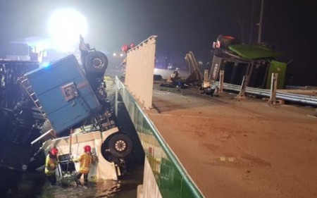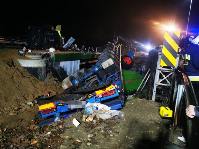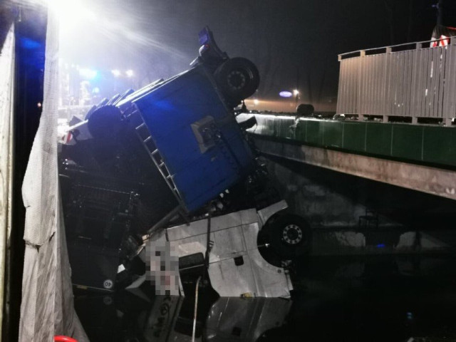 У Польщі у містечку Котово громадянин України потрапив у ДТП на вантажівці. Він злетів з дороги на місці будівництва мосту і впав у воду.