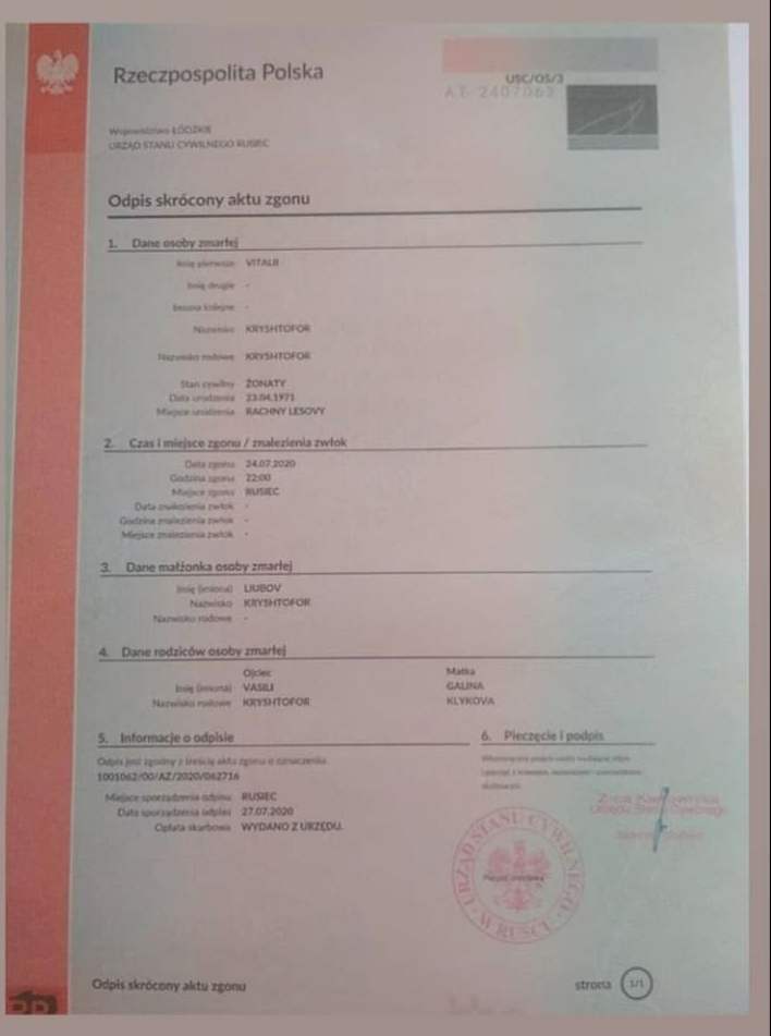 24-го липня у Польщі на заробітках від інсульту помер 49-річний Віталій Криштофор з Нововолинська.