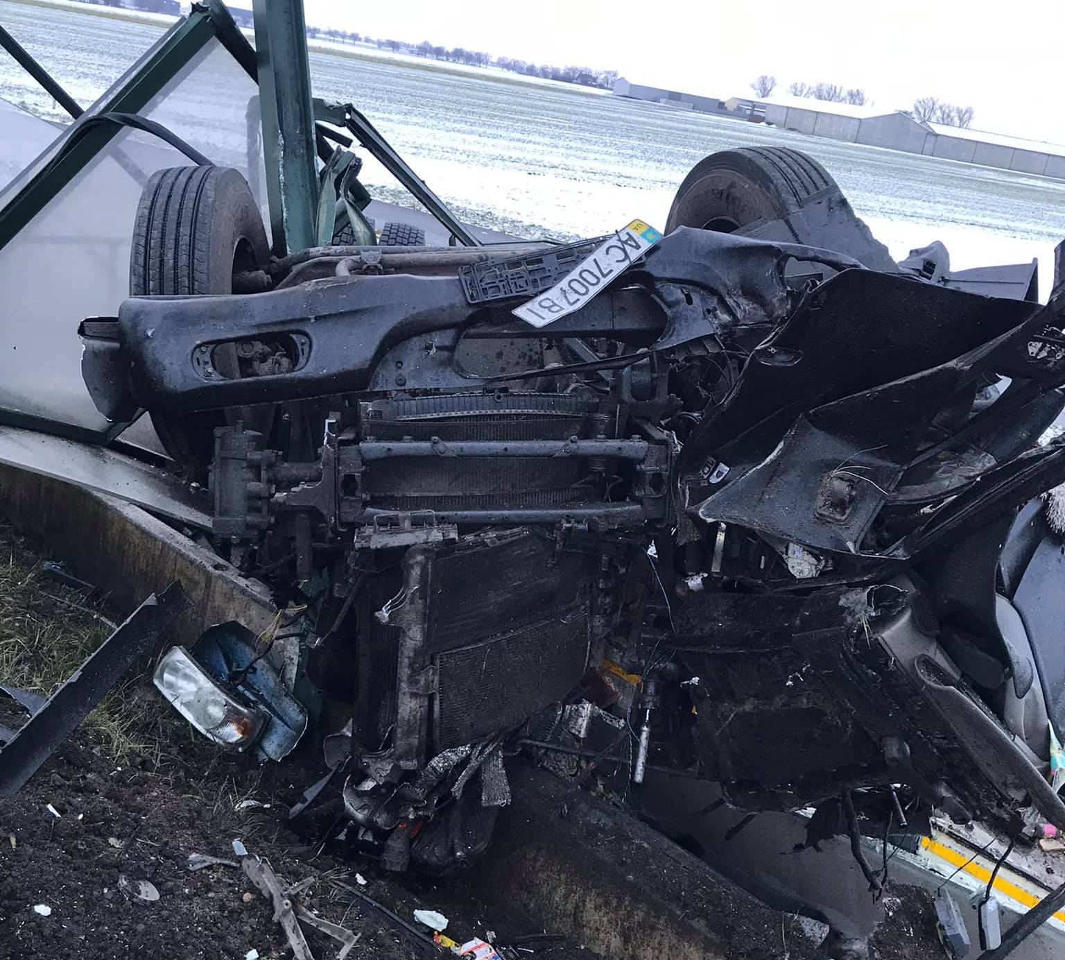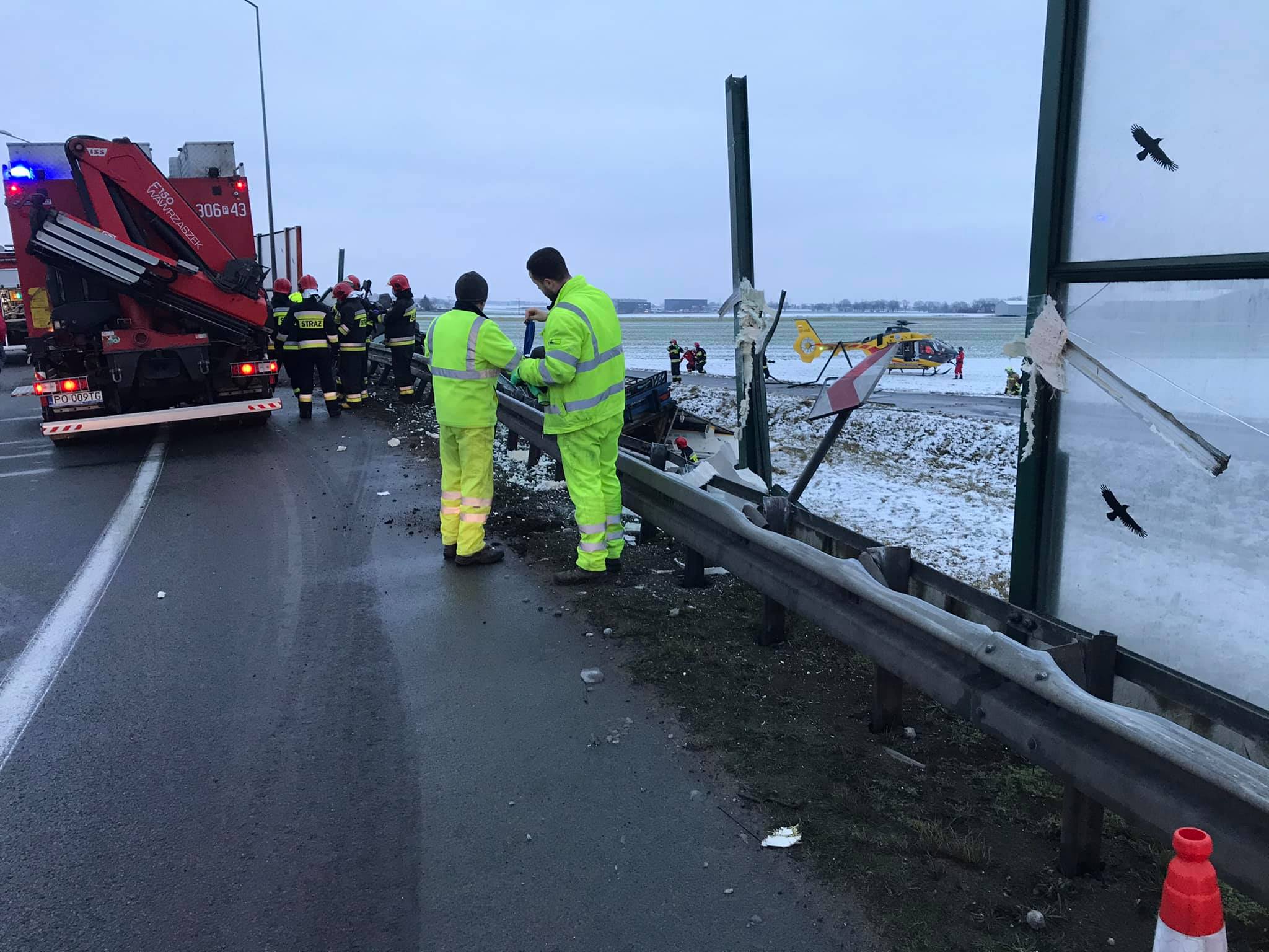 Як зазначається у дописі, автопригода сталася на автостраді А2 при з’їзді на s5 13 січня в пообідню пору. Вантажівка на волинських номерах вилетіла з дороги за огорожі в яр.