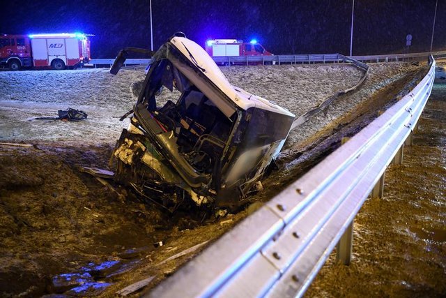 В управлінні головної дирекції національних доріг та автомагістралей поінформували, що автобус наїхав на відбійник на кінці з’їзду до пункту обслуговування пасажирів «Кашице» і перекинувся у кювет.