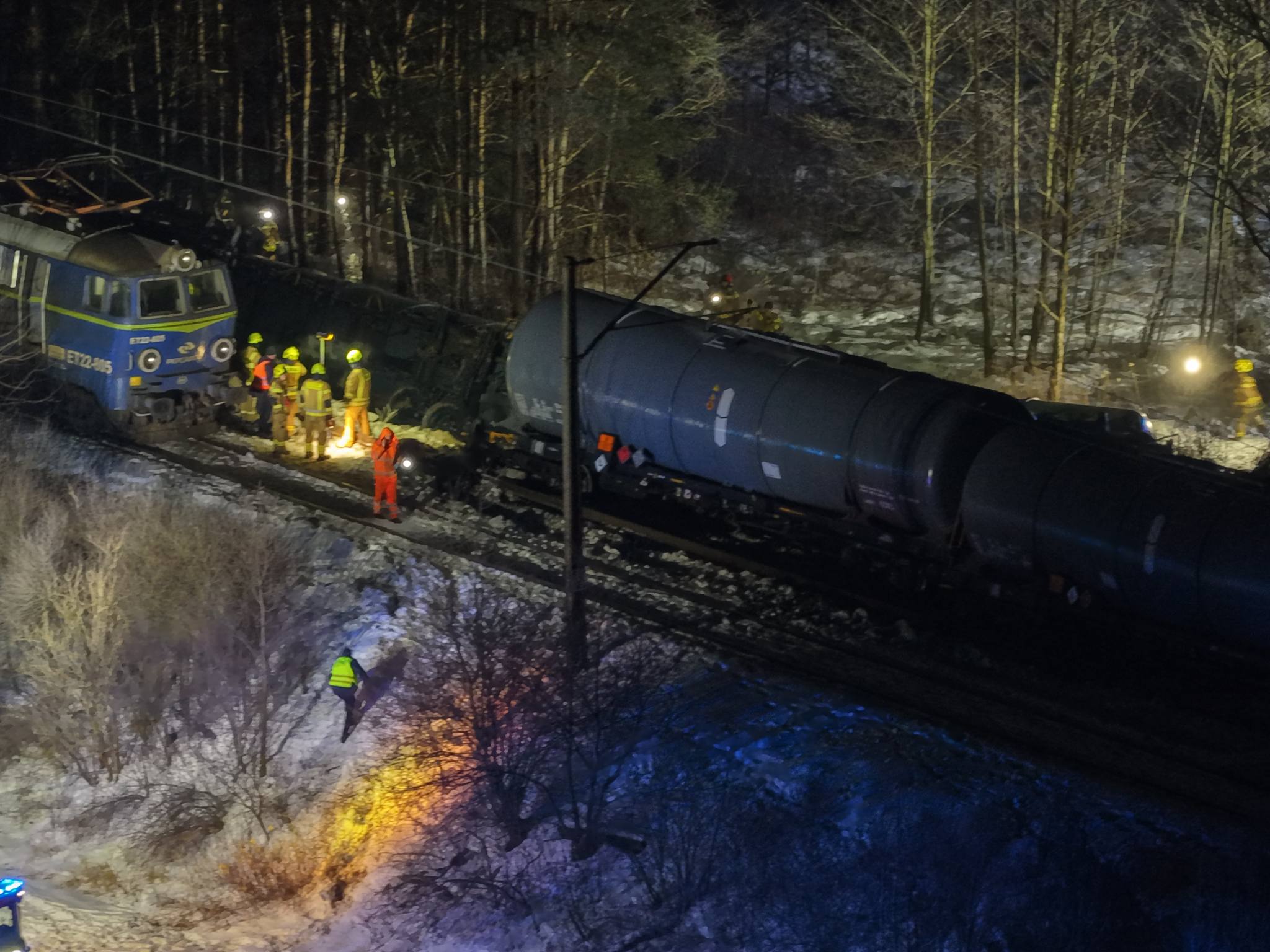 З рейок зійшли шість із 35 вагонів потяга, який перевозив мазут. Вони з’їхали з насипу, лежать на боці поза колією. Рятувальні служби не фіксують витоку палива з вагонів. Наразі польські рятувальники оцінюють ступінь пошкодження вагонів. Електроживлення контактної мережі вимкнено. Попередньою причиною надзвичайної ситуації вважають сильні морози та аварія контактної мережі.