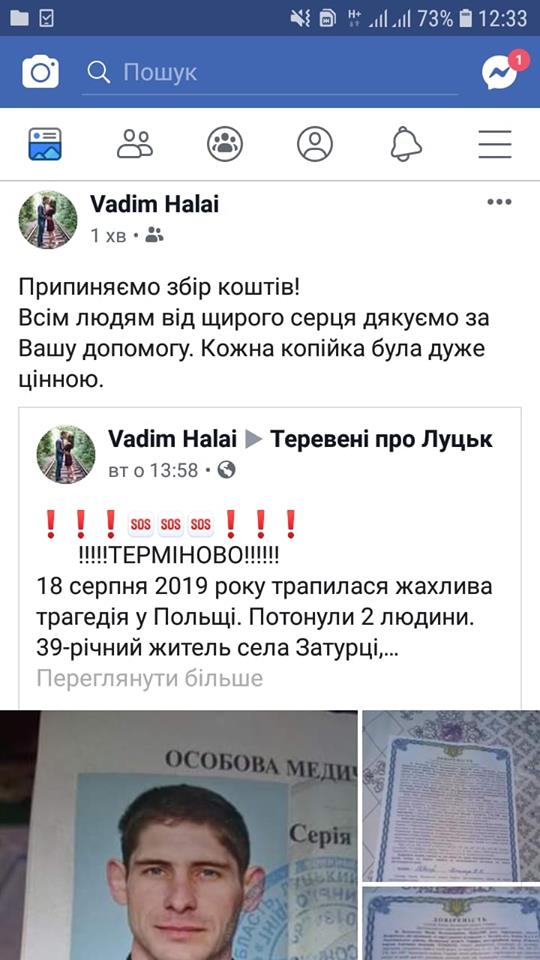 23 серпня волонтери повідомили, що збір коштів завершено.Нагадаємо, раніше повідомлялось, що в Польщі загинув 20-річний житель села Мовчанів.