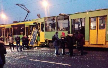 У Познані в результаті зіткнення трьох трамваїв постраждали декілька людей.